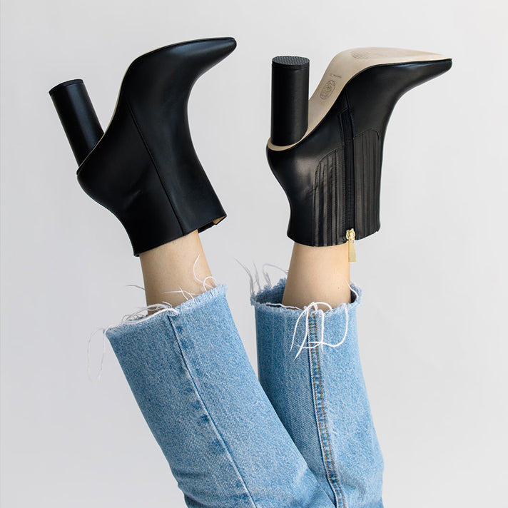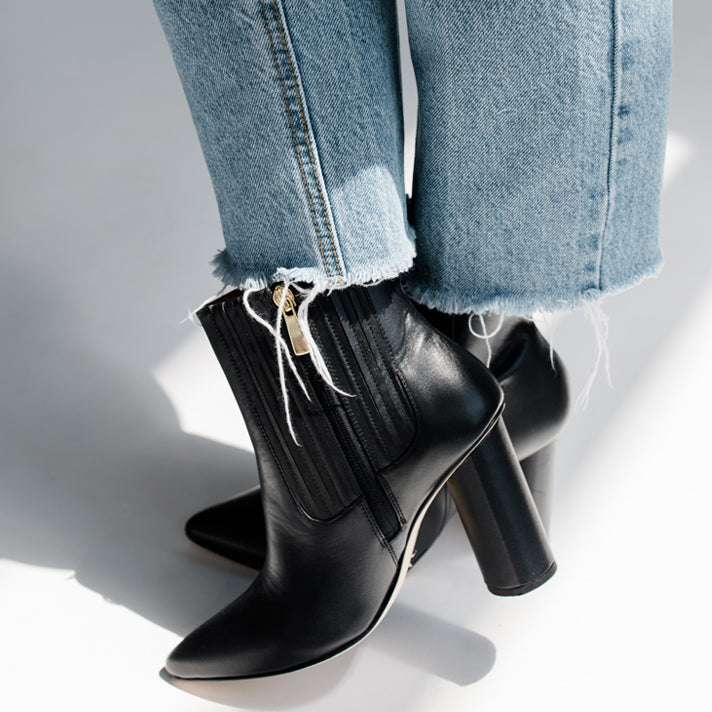 Hay botines de muchas formas y estilos, pero buscamos que este primero fuera una versión clásica. Uno de los aspectos que realmente quería perfeccionar era el largo. He tenido botines que me quedan demasiado cortos o demasiado altos en la pantorrilla y no me favorecen las piernas. Experimentamos con esta medida y creemos que encontramos el largo perfecto para cada mujer. Se pueden usar con jeans, vestidos, faldas o shorts, ¡con o sin meterlos en el pantalón!